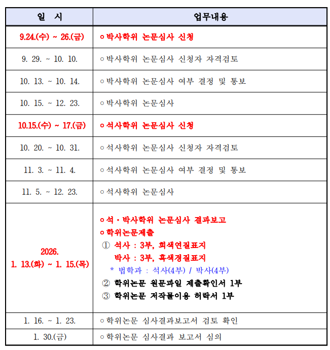 (중요) 25학년도 2학기 학위논문 심사 계획 안내